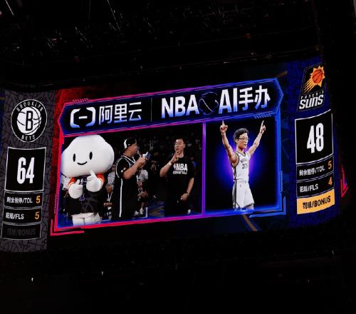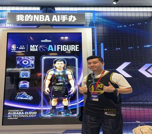 球场大屏还会通过现场摄像头捕捉身穿球衣的球迷形象,随后由阿里云 AI 生成专属「球迷潮玩」——穿着主队球衣,配合动作,以「球星收藏手办」的形式展现在屏幕上,并与真人同框对比。这是 NBA 赛场上呈现的的首个 AI-CAM Show,是将赛事观看与球迷互动的一次深度重塑。
