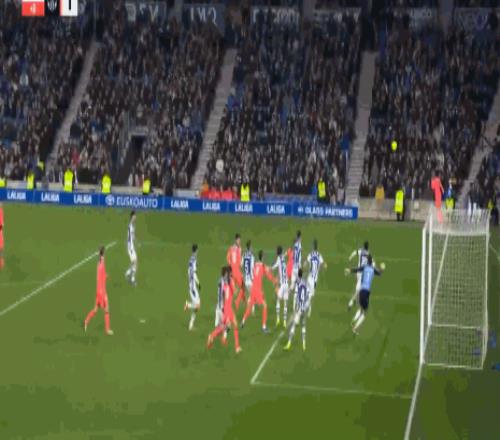 皇马上半程高开低走,从领先巴萨5分到被巴萨领先4分,巴萨4分优势夺得了半程冠军。皇马果断地炒掉了主帅阿隆索,昨天临时主帅阿韦洛亚率队击败莱万特,下半程刚开始,皇马也是继续追赶巴萨。巴萨这边,今天作客阿诺埃塔球场,遭到皇家社会的强力狙击,开场后巴萨反客为主展开猛烈攻势,只是皇家社会这边守得很稳,巴萨运气也很差。开场不到1分钟,奥亚萨瓦尔就打入一球,只不过越位在先进球被吹掉。第8分钟,巴萨中场断球反击,费尔明带球推进推射得手,但奥尔默断球犯规在先,进球也被吹掉。之后德容,亚马尔先后破门,都是越位在先被吹掉。第31分钟,皇家社会中后场大范围斜长传转移到右侧,日本梅西久保建英插上禁区边上将球卸下后回传,格德斯禁区角上策应接球调整一步大力兜传门前,后点无人防守的奥亚萨瓦尔小禁区角上左脚凌空扫射,皮球应声入网,皇家社会1:0首开纪录。